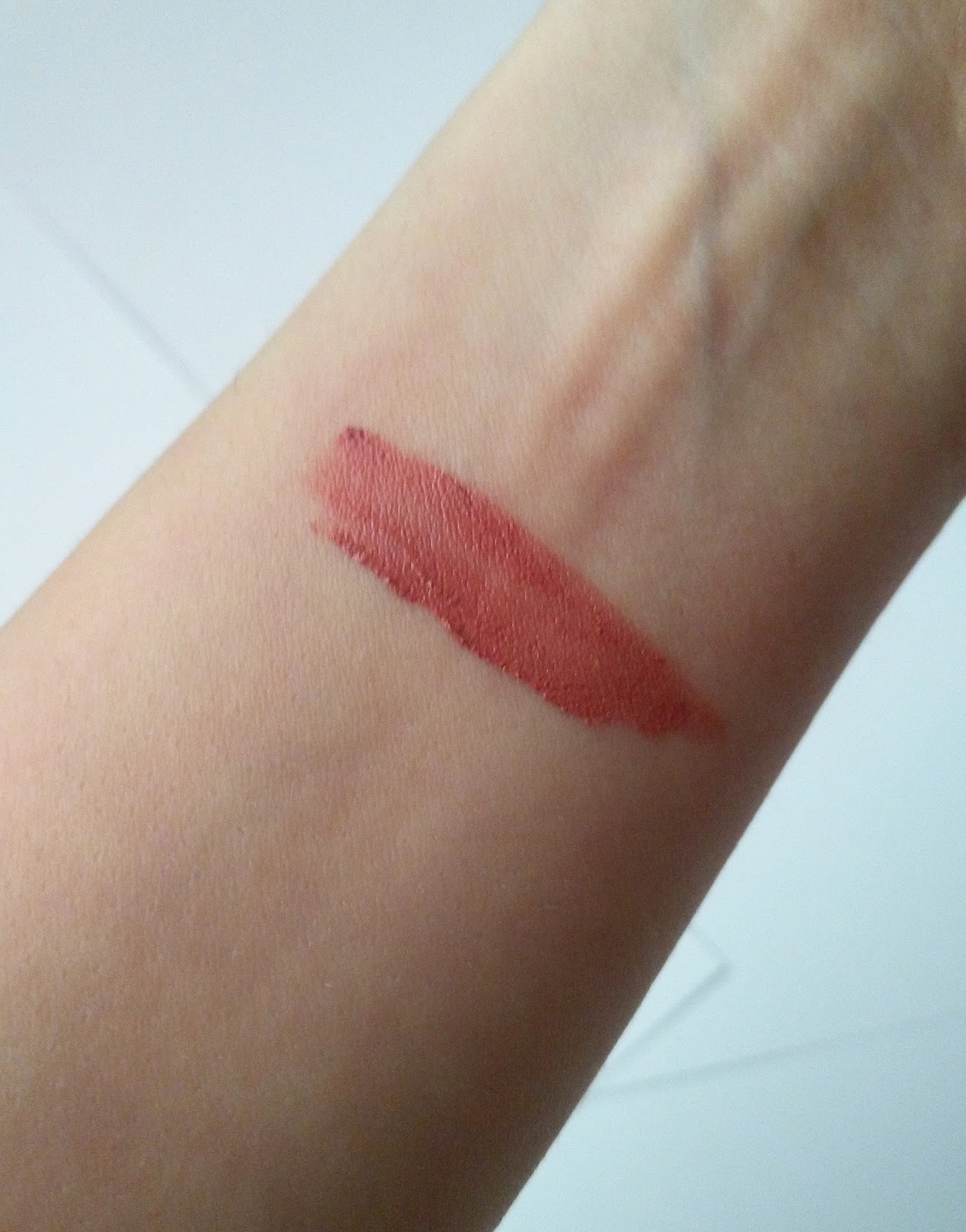 Опитах се да го го покажа на устните си като е една идея малко по - тъмен. Снимката е правена с предната камера на телефона ми на много кофти светлина все пак.